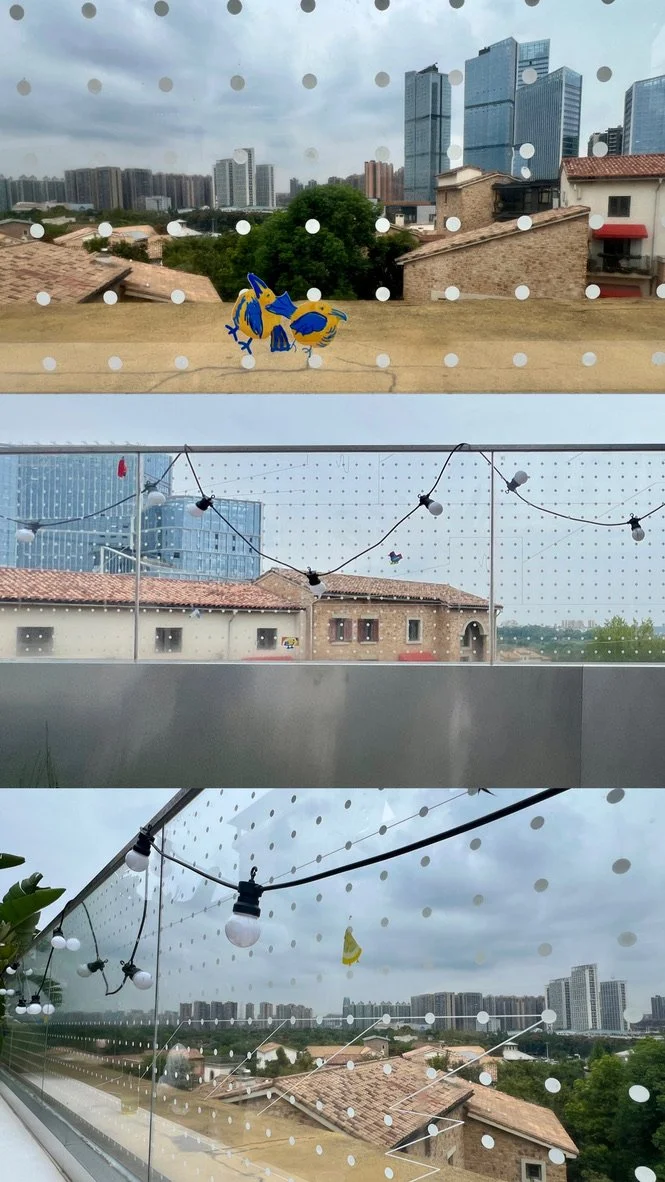 A4 Art Museum and artist Liuyi invited me again for the opening of a new exhibition, The Lexicon of the Everyday. On the museum balcony they set up bird collision prevention stickers based on my suggestions for width and spacing. These designs came from our earlier DIY sticker workshop with citizens, created together by our project group and participants.